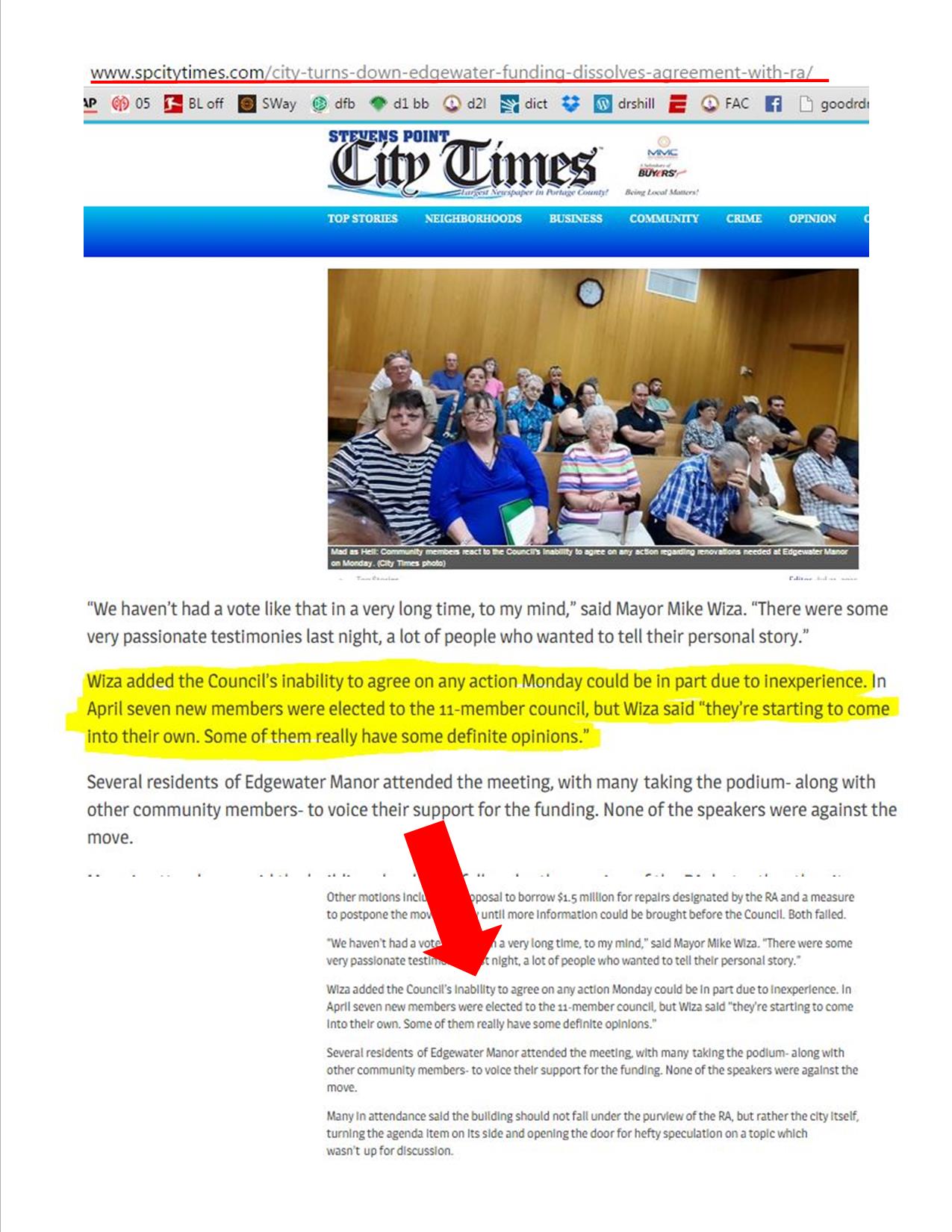 Maybe too many of the council members (seven recently elected) are still getting their feet wet. The mayor of Stevens Point himself made sort of a backhanded whack of an excuse for the council’s inability to move on the Edgewater Manor issue earlier Monday, calling them an “inexperienced” bunch.