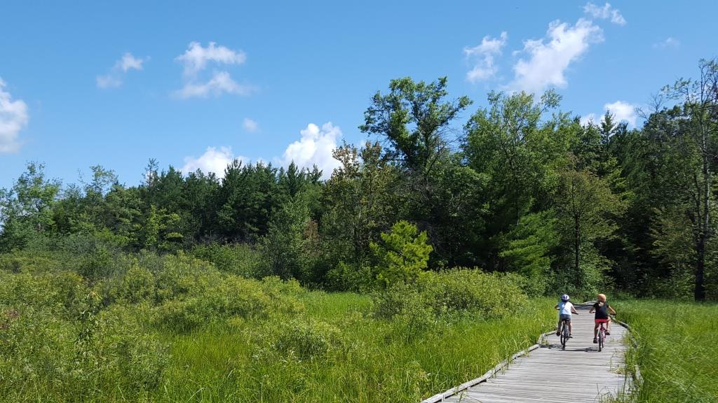 After lunch, offered the choice of continuing or riding home, the two 9-year-olds decided they wanted to go play a bit. So the females departed for the house while us fellas set out for our final 13 miles on the southern half of the trail.