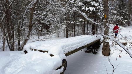 Above the creek, it mostly followed a groomed skiing path. The trail is on just one portion of the 10 miles of other mowed and maintained trails in the forest, which is open to the public year-round. About half the trails are groomed for cross-country skiing.